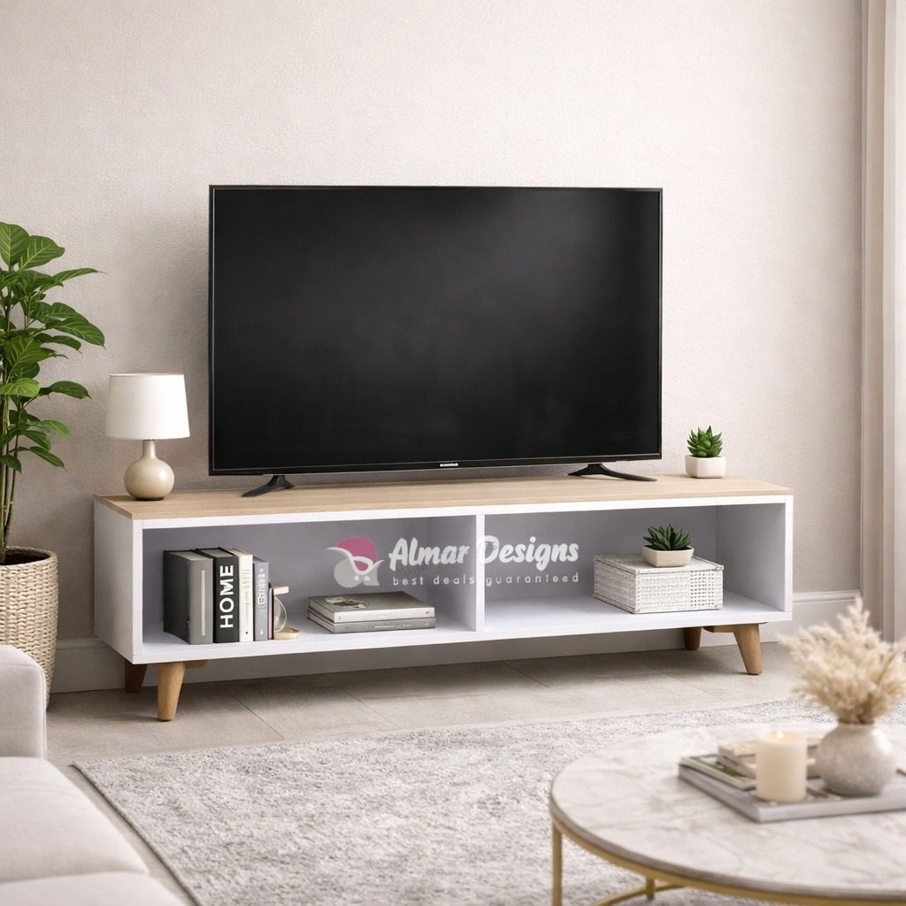 Crafted with high-quality engineered wood and a sleek finish, this TV stand fits seamlessly into any décor—whether minimalist, rustic, or contemporary. Its compact design makes it ideal for apartments, small rooms, or any space-conscious layout.